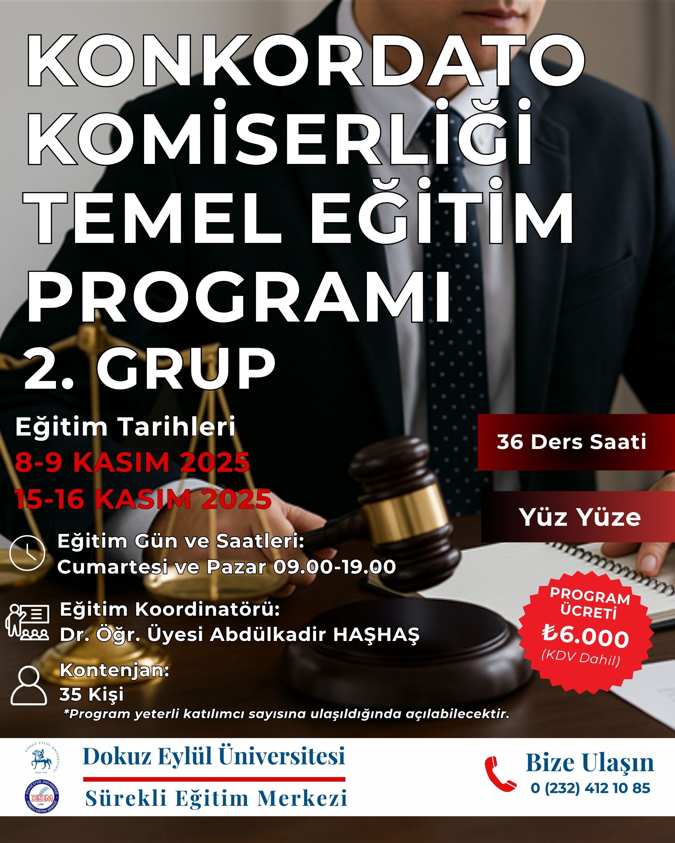 Program Başlangıç-Bitiş Tarihi: 8.11.2025 - 16.11.2025 Eğitim Süresi: 4 Gün/ 36 Saat Eğitim Türü: Yüz Yüze Kesin Kayıt Bitiş Tarihi: 6.11.2025