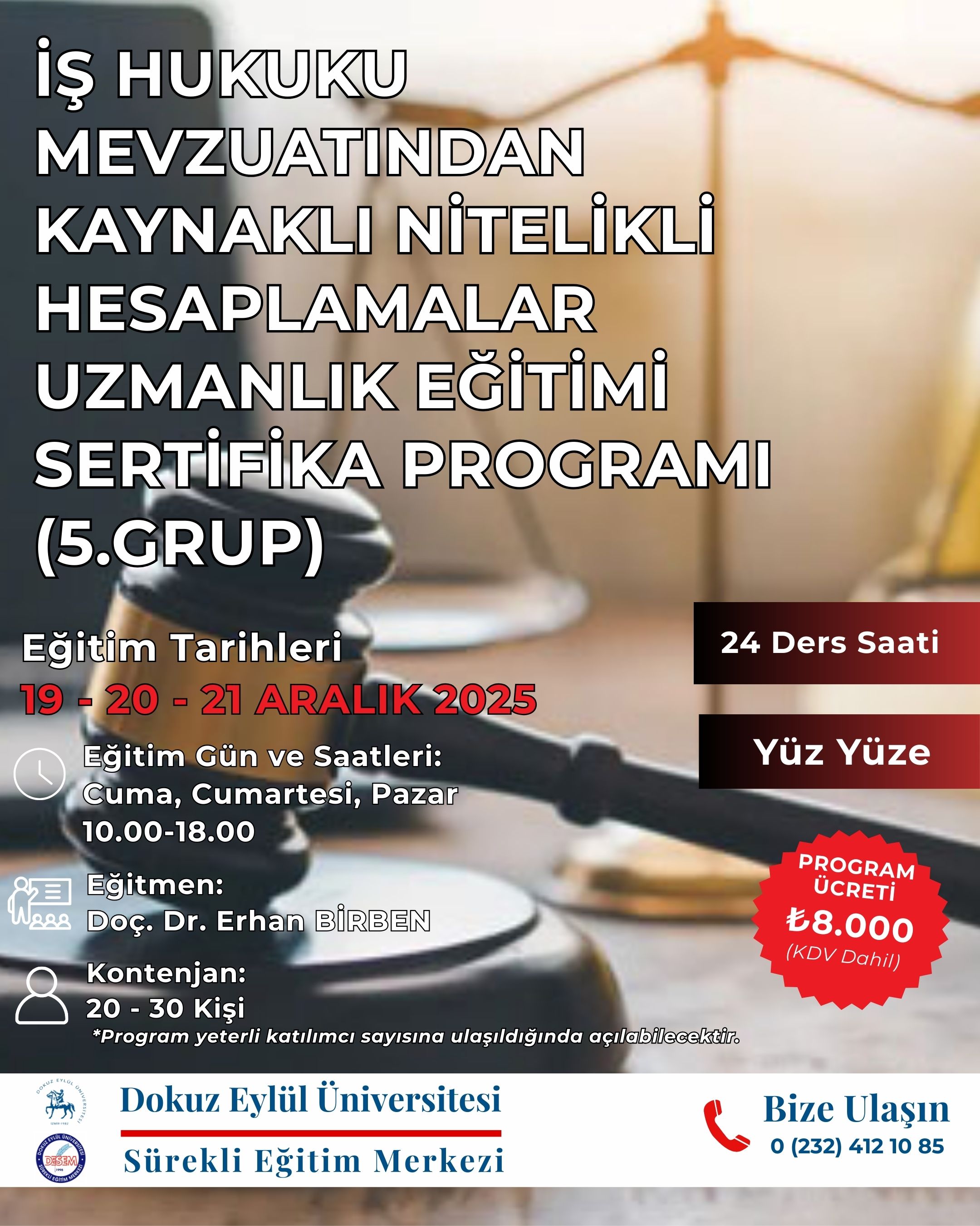 İş Hukuku Mevzuatından Kaynaklı Nitelikli Hesaplamalar Uzmanlık Eğitimi Sertifika Programı 5. Grup